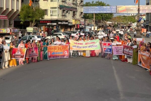 नारी शक्ति वंदन अधिनियम के समर्थन में उमड़ा सर्व महिला समाज, बनाई विशाल मानव श्रृंखला
