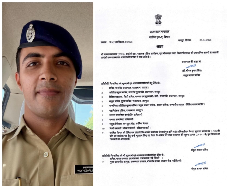 जयपुर/भीलवाड़ा। राजस्थान सरकार के कार्मिक (क-1) विभाग ने सोमवार को एक प्रशासनिक आदेश जारी करते हुए आईपीएस अधिकारी माधव उपाध्याय (2023 बैच) को उनके वर्तमान पद से हटाकर पदस्थापन आदेशों की प्रतीक्षा में रख दिया है।जारी आदेश के अनुसार, उपाध्याय वर्तमान में सहायक पुलिस अधीक्षक, वृत्त भीलवाड़ा सदर के पद पर कार्यरत थे। उन्हें प्रशासनिक…