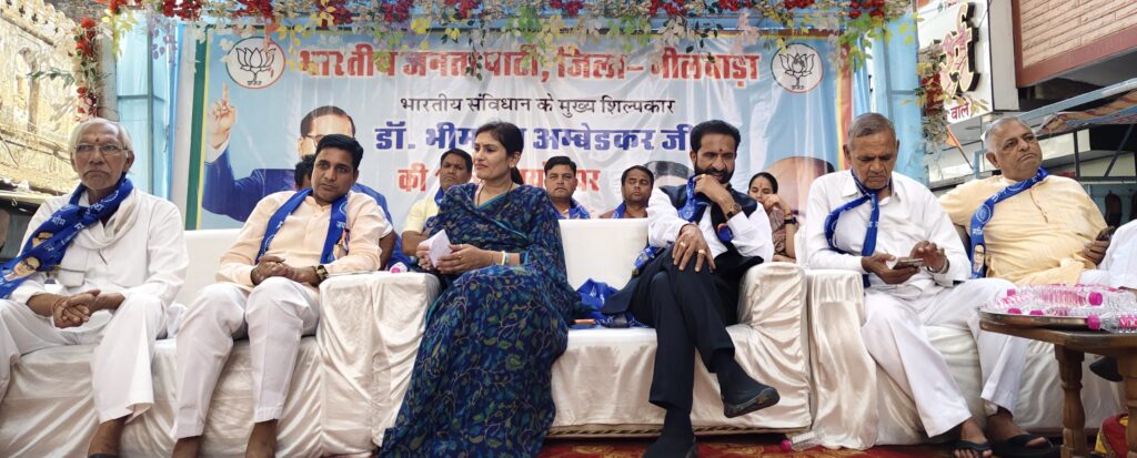 भीलवाड़ा। भारतीय संविधान के शिल्पकार और सामाजिक न्याय के महान पुरोधा ‘भारत रत्न’ डॉ. भीमराव अंबेडकर की 135वीं जयंती भाजपा जिला संगठन द्वारा श्रद्धा और उत्साह के साथ मनाई गई। कार्यक्रम की शुरुआत बाबा साहेब की प्रतिमा पर माल्यार्पण कर की गई, जिसके बाद मुख्य समारोह आयोजित हुआ। मुख्य कार्यक्रम कपासन विधायक अर्जुनलाल जीनगर एवं राजसमंद विधायक दीप्ति माहेश्वरी के मुख्य आतिथ्य में सम्पन्न हुआ। कार्यक्रम की अध्यक्षता भाजपा जिलाध्यक्ष प्रशांत मेवाड़ा ने की, जबकि पूर्व सांसद सुभाष बहेडिया, पूर्व विधायक विट्ठल शंकर अवस्थी और वरिष्ठ नेता पेंटर सूरज का सान्निध्य रहा। जिला प्रवक्ता अंकुर बोरदिया के अनुसार विधायक अर्जुनलाल जीनगर ने अपने संबोधन में कहा कि बाबा साहेब का मूलमंत्र “शिक्षित बनो, संगठित रहो और संघर्ष करो” आज भी प्रासंगिक है और समाज के हर वर्ग को इसे अपनाना चाहिए। उन्होंने कहा कि डॉ. अंबेडकर ने करोड़ों लोगों को समानता और न्याय का मार्ग दिखाया।